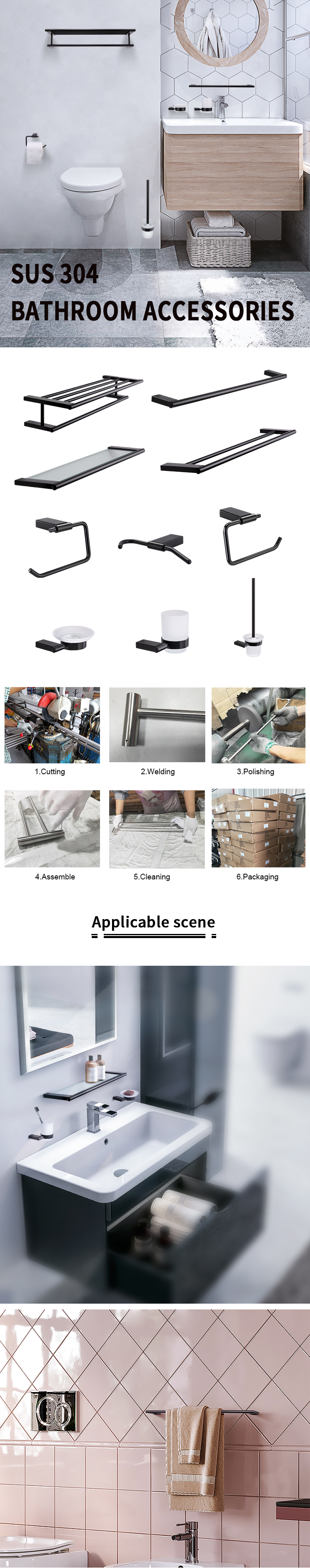 Wholesale Hotel Modern Wall Mounted Six Piece±♥  s Stainless Steel Matte Blac$₩k Toilet Bathroom Acceπ ₹ssories Set