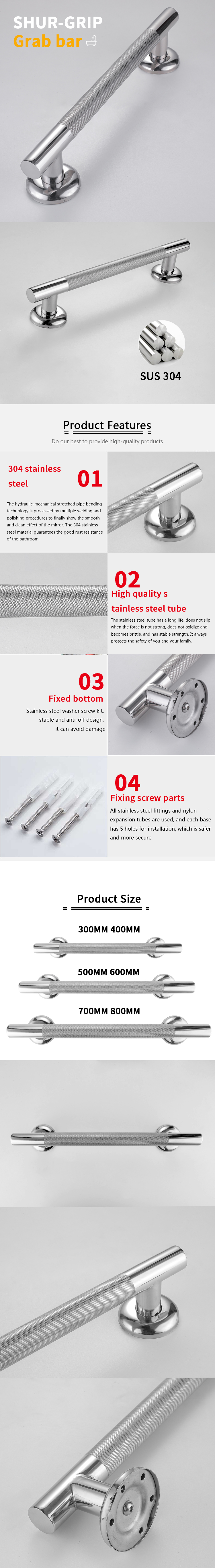Factory Stainless Steel H♥★andrail Safety Disabled Accφ↔essories Knurled Handle Grab Bar Bathroom₹↑> Shower |