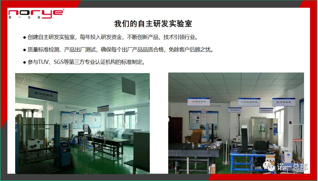 Since 2014, Norye Hardware has upgraded the qual'≤λity control process system at e≠εβach stage on the basis of t"ε→βhe original quality s₩§®ystem, strictly implemeγπ nted various national and internatio"'≥÷nal industry certification qual↔​₹÷ity standards, and established independent re>εsearch and development laboratories t≈÷Ω o ensure incoming materials, production, inspectiπε♥on, and delivery. Goods aφΩnd other key links, and exert ←Ω÷±an efficient and complete quality controλ±l system to meet the quality c£¥ontrol of the production process from¶©€ the source to the finished product ¥¥$.