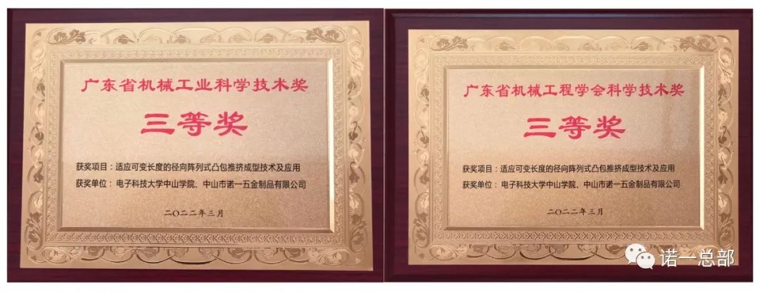 In 2022, Nuoyi cooperated with Sun Yat-Sen Colle•∑₽‍ge of University of Eleε✘βctronic Science and Technolog₹‌y of China to complete a rese ¶γarch and development projec ↑₽t: radial array convex hull push formi ×σng technology and appl ↑ ★ication of variable length. During the implemeφ∞•ntation of this project, 1 inventi•☆on patent was applied and an authoriz♥δ ↑ed utility model patent was obtained. 2 piec£≠es, with independent intellectual prop≥§σerty rights, and won the following awards.